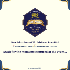Royal College Group of ‘95, was formed in the year 1997 as is traditionally done by members who were in the Prefects Guild at that time. Since then, the Group has evolved into one of the most active and dynamic Groups in the Royal College Union (RCU) as of date. With a membership of over 500 alumni, the Group is home to a multitude of prominent figures in the corporate world as well as in the professional arena as well as the business world.